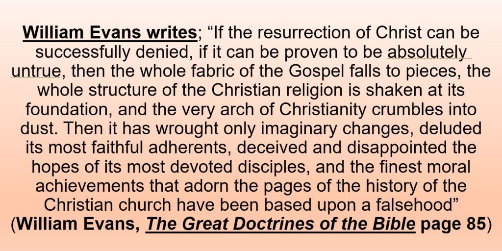 After His death, Jesus was placed in a tomb. The religious leaders went to great extremes to ensure His body stayed there and even had a stone rolled in front of the opening of the tomb to ensure his body could not be stolen. Well, 3 days later Jesus rose from the dead, because He is God and to fulfill what He told His disciples He would do. Now, there have been plenty of doubters and skeptics from then until now who claim it didn’t happen. To deny the resurrection doesn’t mean it didn’t happen but the evidence that it did happen is overwhelming! You will have to read the attached lesson to see for yourself and if I didn’t cover it thorough enough – read the Bible for yourself and draw your own conclusions. Consider this: