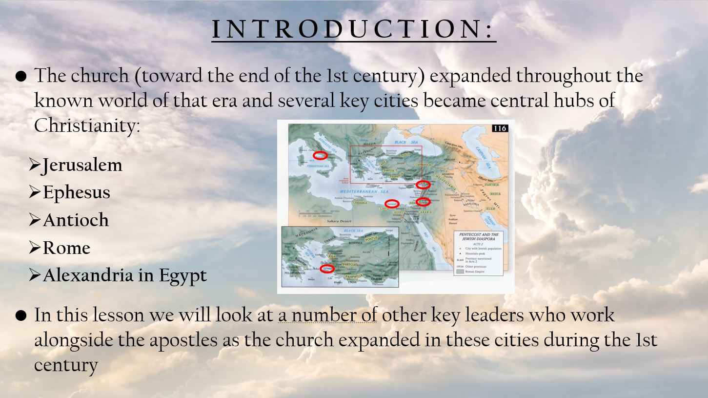 In this lesson we will look at the contributions to the early church from people like: Mark who wrote the earliest gospel account of the life of Jesus and instrumental in the establishment of the church in Alexandria Egypt. Luke, who wrote 2 books comprising 28% of our New Testament. Timothy, who was personally mentored by Paul and known as Paul’s son in the faith was instrumental in defending against the influence of heresy in the church at Ephesus. Others, like Titus, James (the brother of Jesus) who wrote an Epistle (letter) containing instructions and guidance on living out our life of faith and many more individuals whom we owe a tremendous debt to.