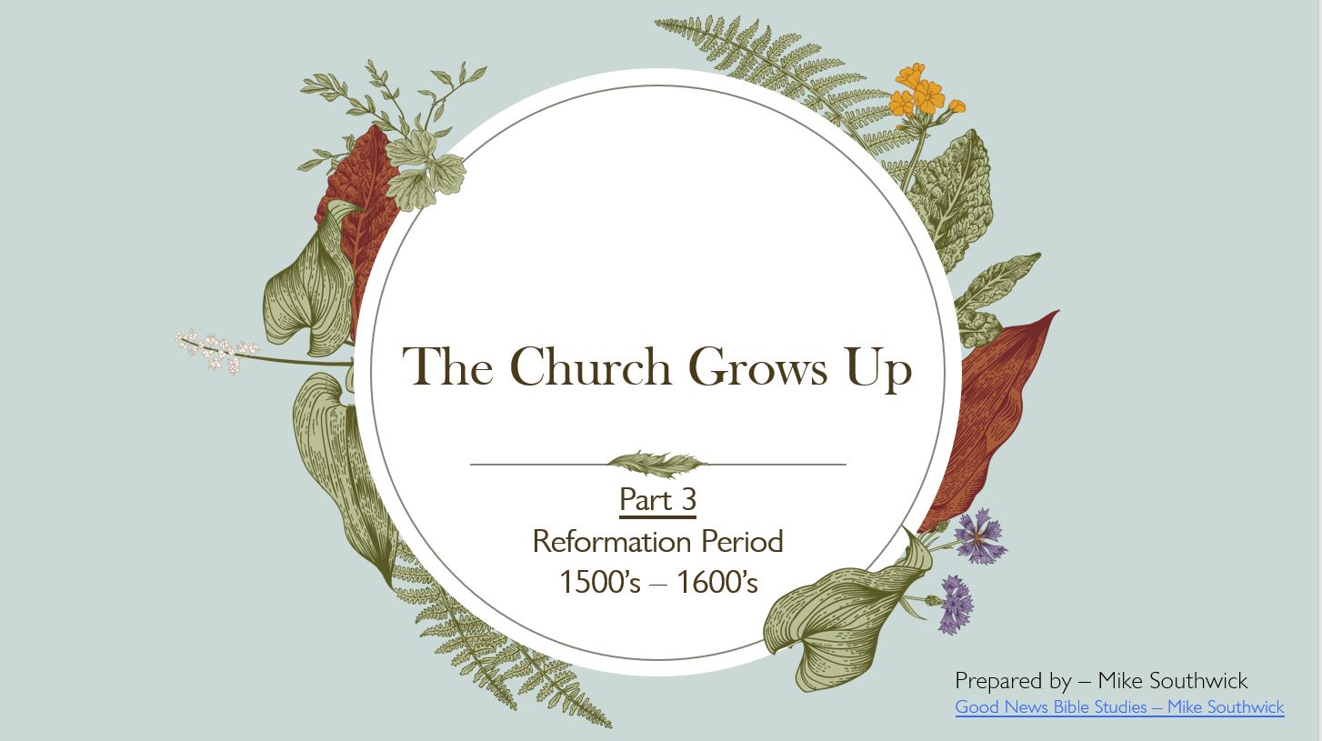 For this lesson we will focus on 5 key Reformers of the Reformation Period who recognized the compromise and even corruption that took a foothold in the Church during the Dark Ages. We should be thankful that these reformers boldly spoke the truth, even at risk of losing everything including their life. These reforms and the work of the Holy Spirit in the lives of believers continued to see the church prevail for another 1000 years and more!