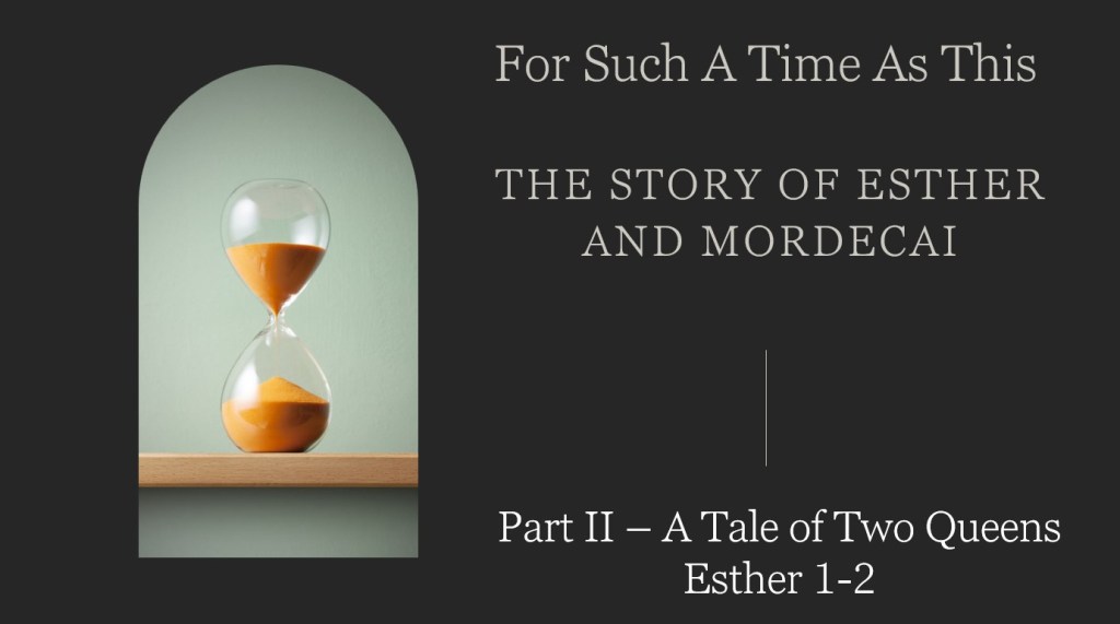 At this banquet we are introduced to Queen Vashti who was the reigning Queen over the Persian Empire along with Xerxes. Unfortunately for her she refuses to comply with the Kings request, and this results in her being deposed/removed as queen. This creates an interesting opportunity for the other women of the Persian Empire and as the chapter unfolds, we will see this opens the door for Esther (a young Jewish woman) to become Queen and thus replaces Vashti.