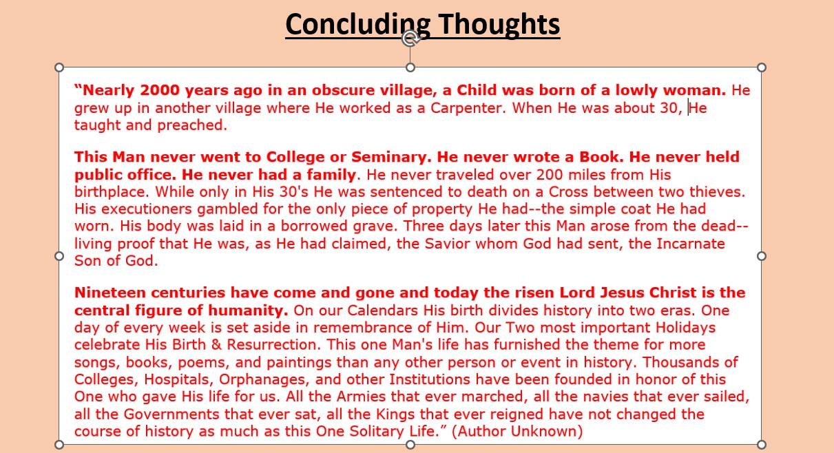 In the end, It is my prayer and hope that you will embrace what John writes toward the end of his Gospel account, “Jesus performed many other signs in the presence of his disciples, which are not recorded in this book. But these are written that you may believe that Jesus is the Messiah, the Son of God, and that by believing you may have life in his name.” (John 20:30-31)